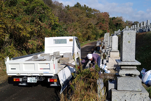 せいえい株式会社では、墓じまい・お墓の修理・墓所管理のほか、 クリーニング、骨壺の交換等、何でも承っております。 木の伐採や切断、誰も住まなくなってしまったご実家の庭掃除や草刈、 定期清掃も承っております。